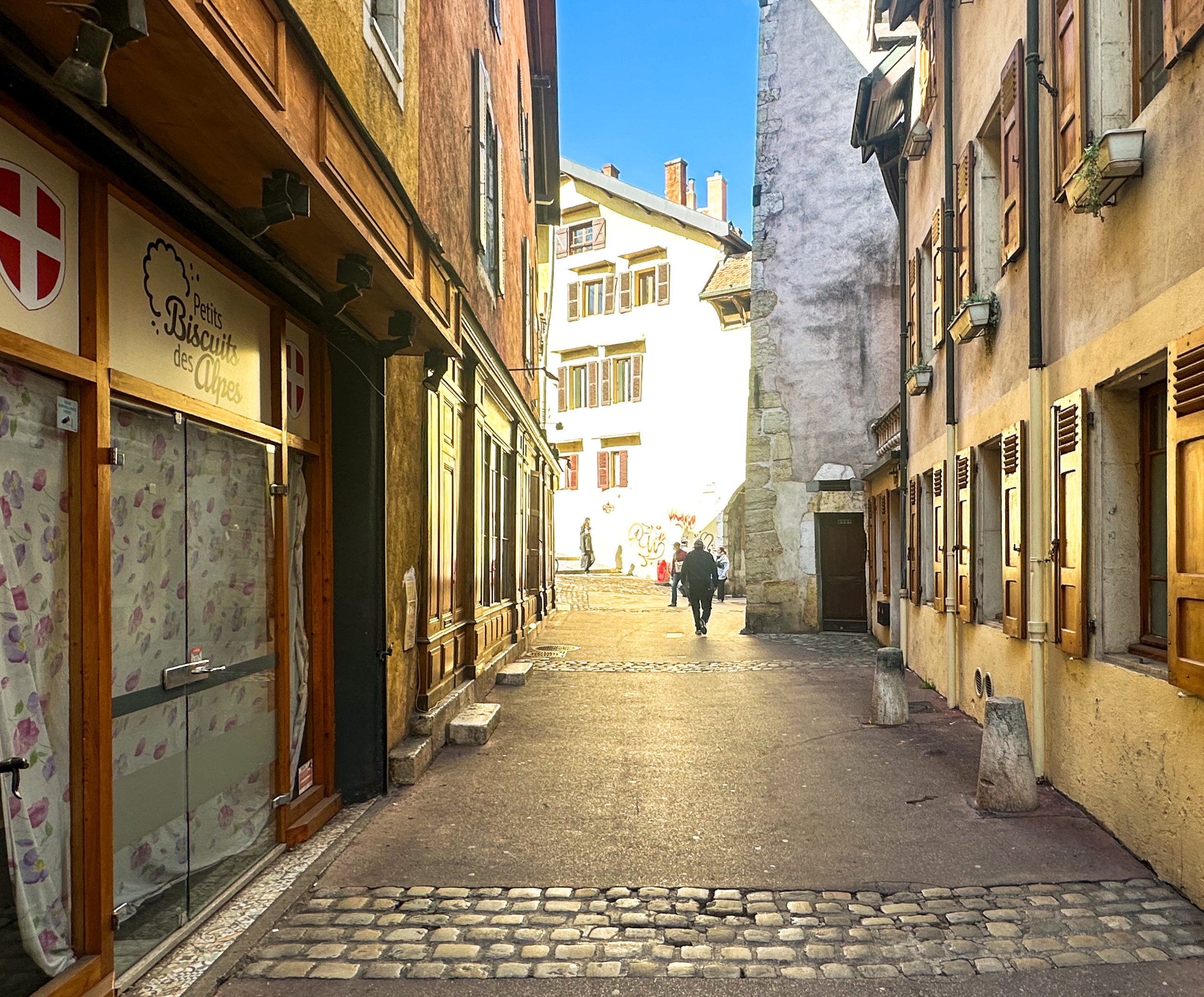 The apartment is located on the 1st floor of a small building located in Faubourg des Annonciades, a pedestrian zone in the heart of Annecy.