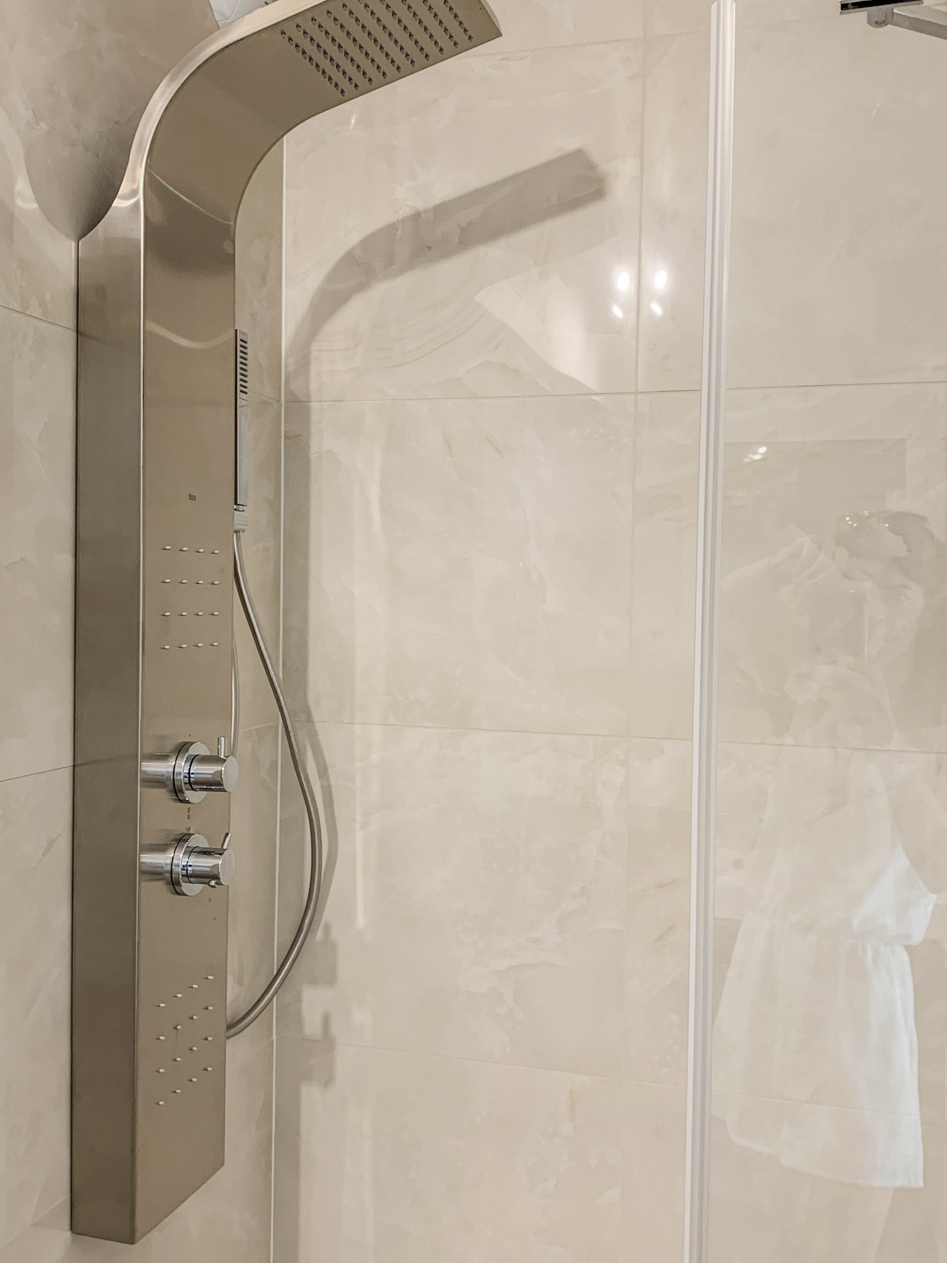 A bathroom with shower