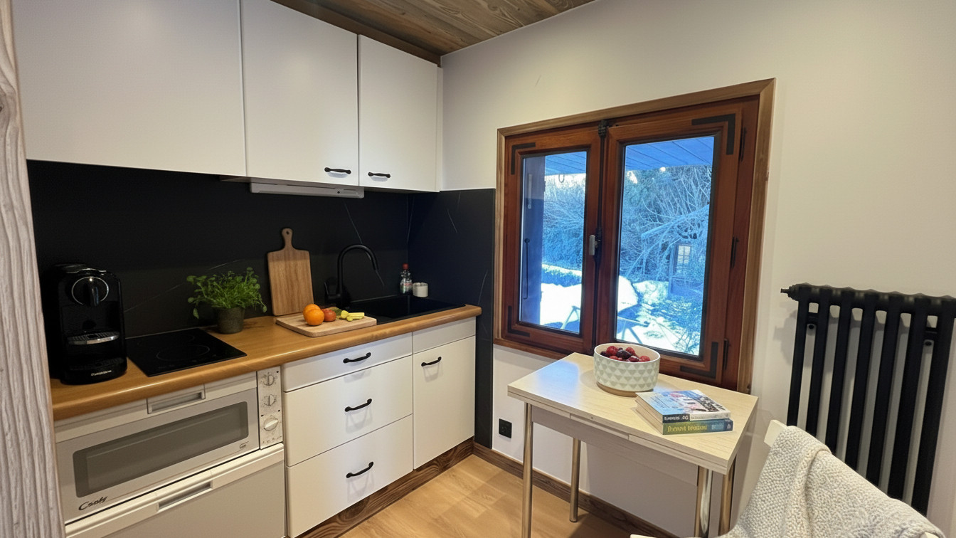 The American kitchen, equipped with an induction hob and all the necessary utensils, will allow you to prepare delicious meals with great ease. Electric radiators will ensure your comfort during cool mountain evenings.