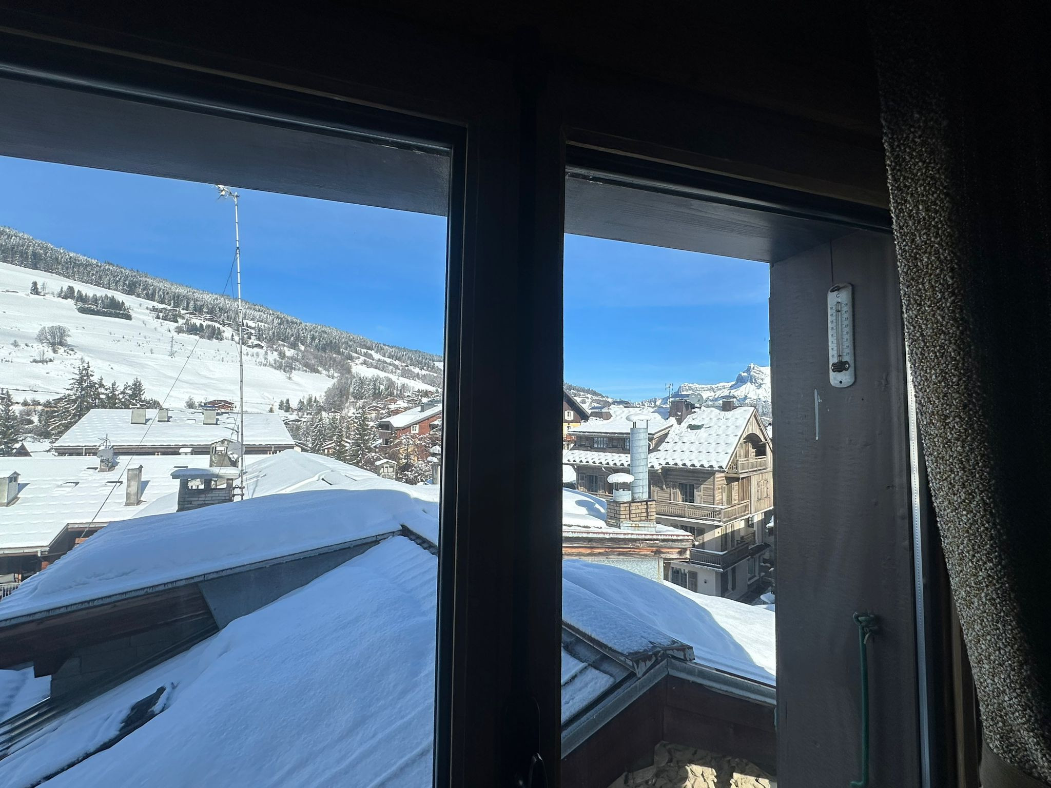 The bell is close to the accommodation, a very pleasant melody that is part of the charm of Megève, it is active from 7:00 am to 9:00 pm.