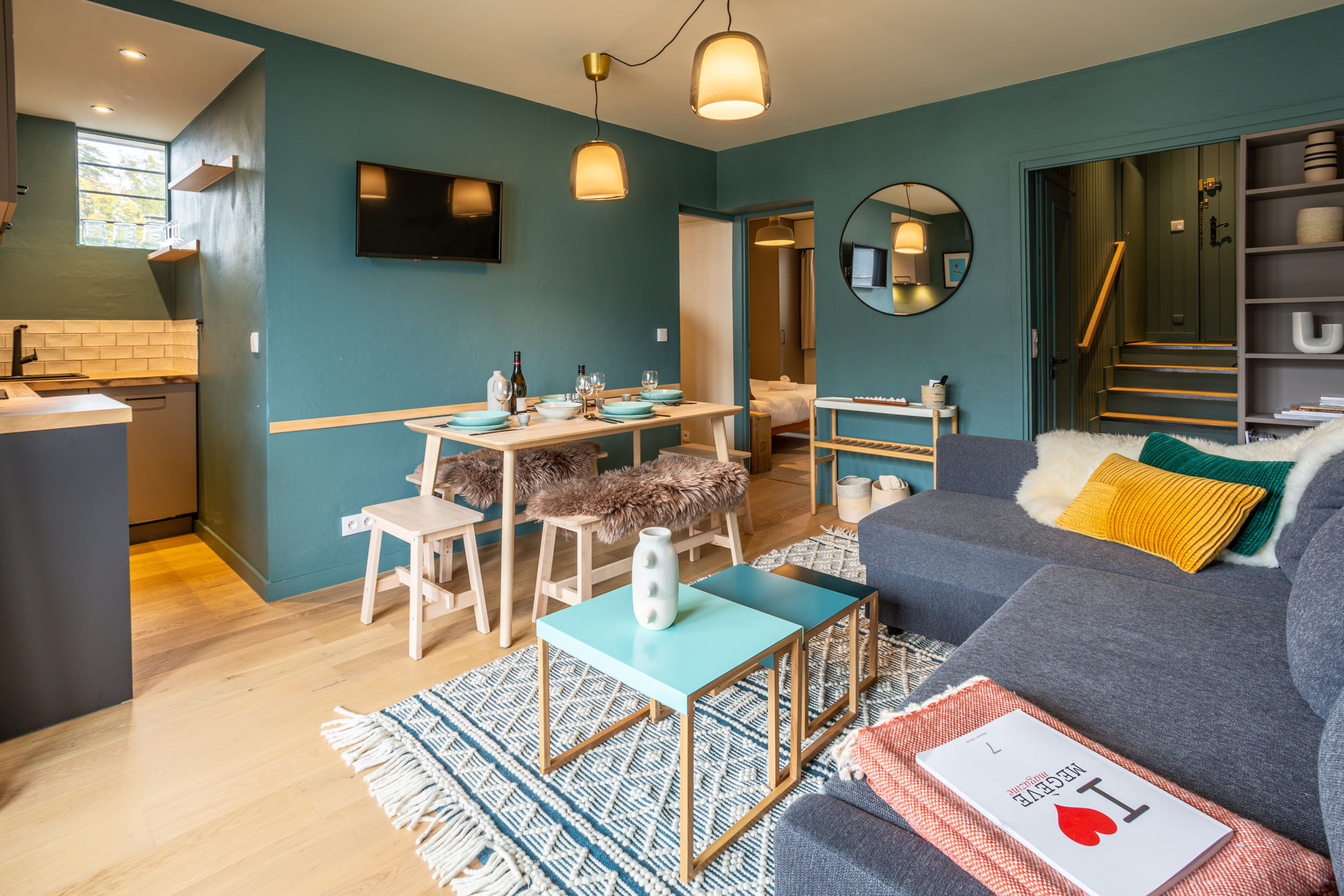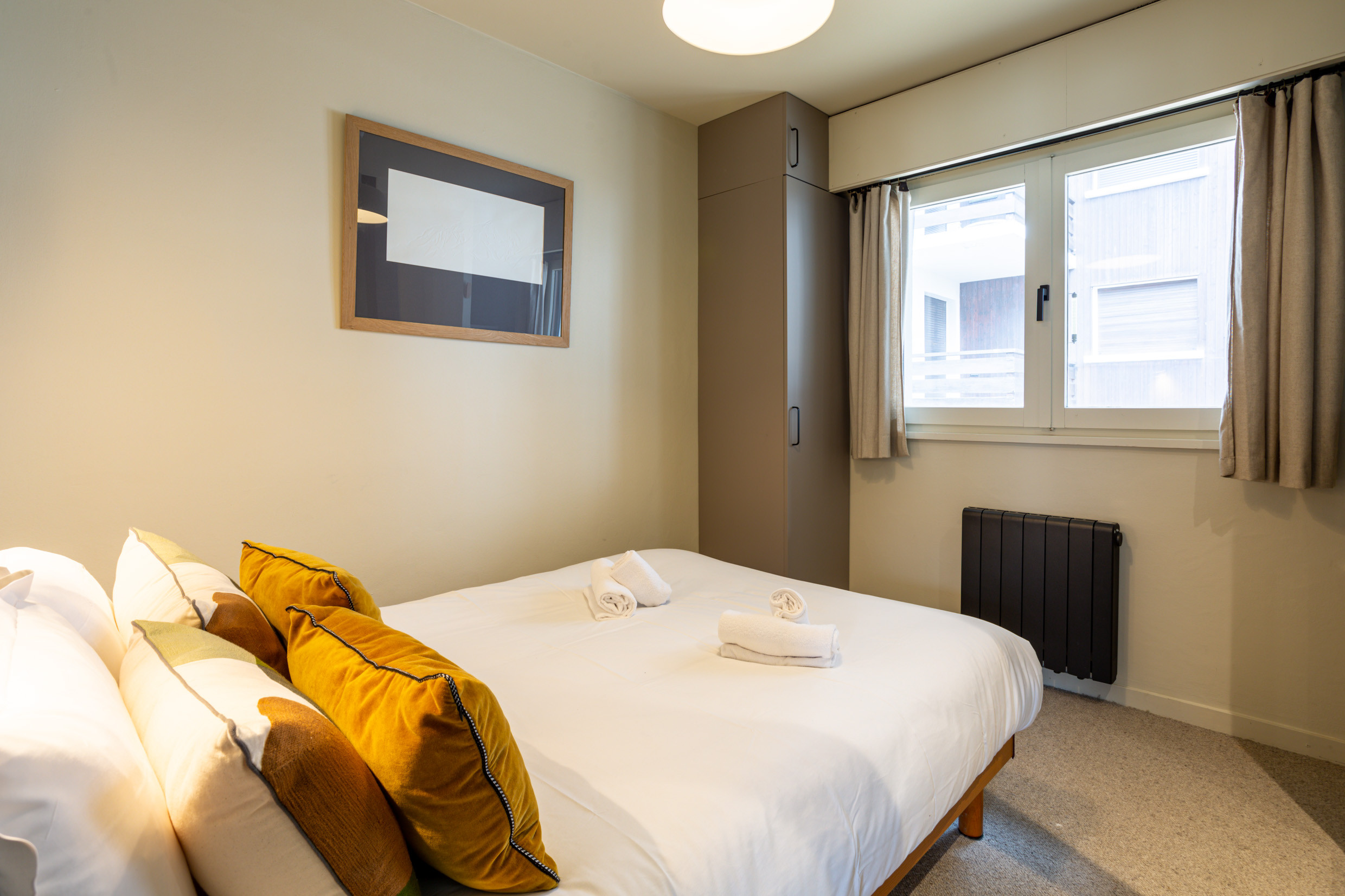 Beautiful, bright apartment with a warm ambience thanks to its brightly colored accents. Its modern, uncluttered decor creates a contemporary, elegant atmosphere. Located in a quiet residence in the pedestrian streets in the heart of the village, 100 meters from the Chamois cable car.
