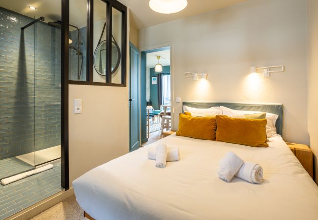 A first separate bedroom with a 140*200 cm bed and en-suite shower room