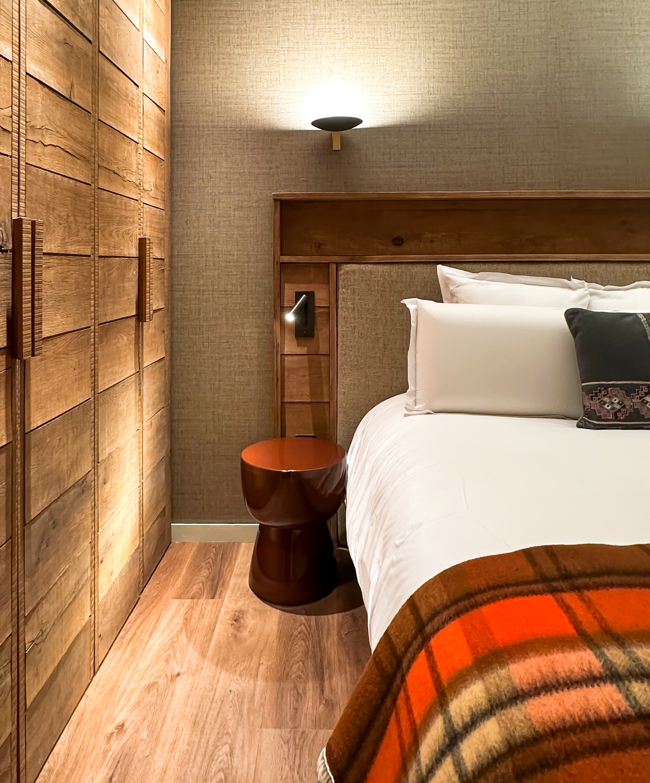 One bedroom with 2 bunk beds, a large wardrobe, and a balcony