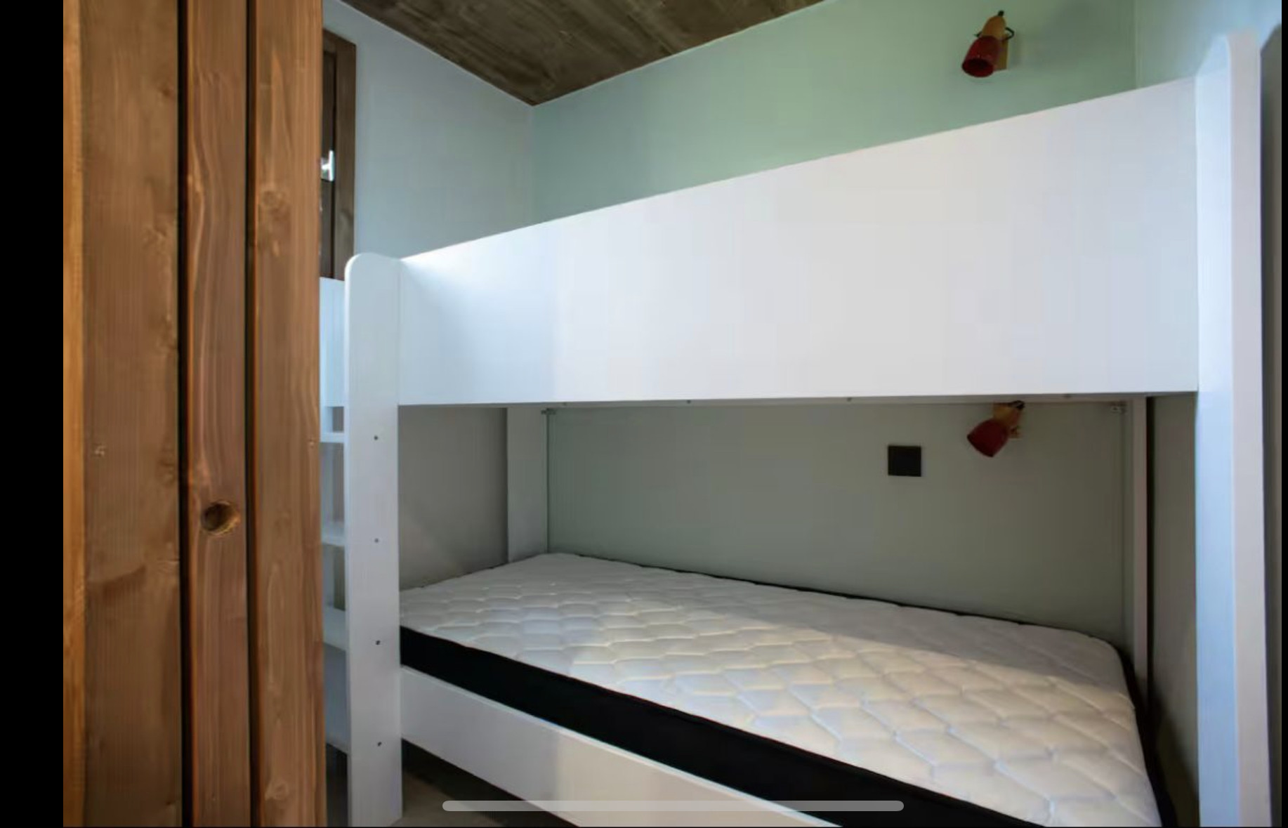The accommodation has two comfortable rooms: one bedroom with a queen-size bed offering a luxurious relaxation space, and a second with a bunk bed ideal for children. The layout allows for peaceful sleep and warm sharing moments.