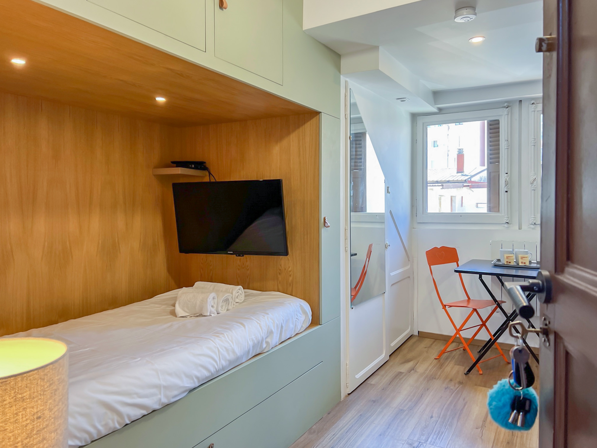 Nestled under the roofs of an Annecy building, this little cocoon offers all the comforts you need for your stay. Located on rue VAUGELAS, one of Annecy's most famous streets.