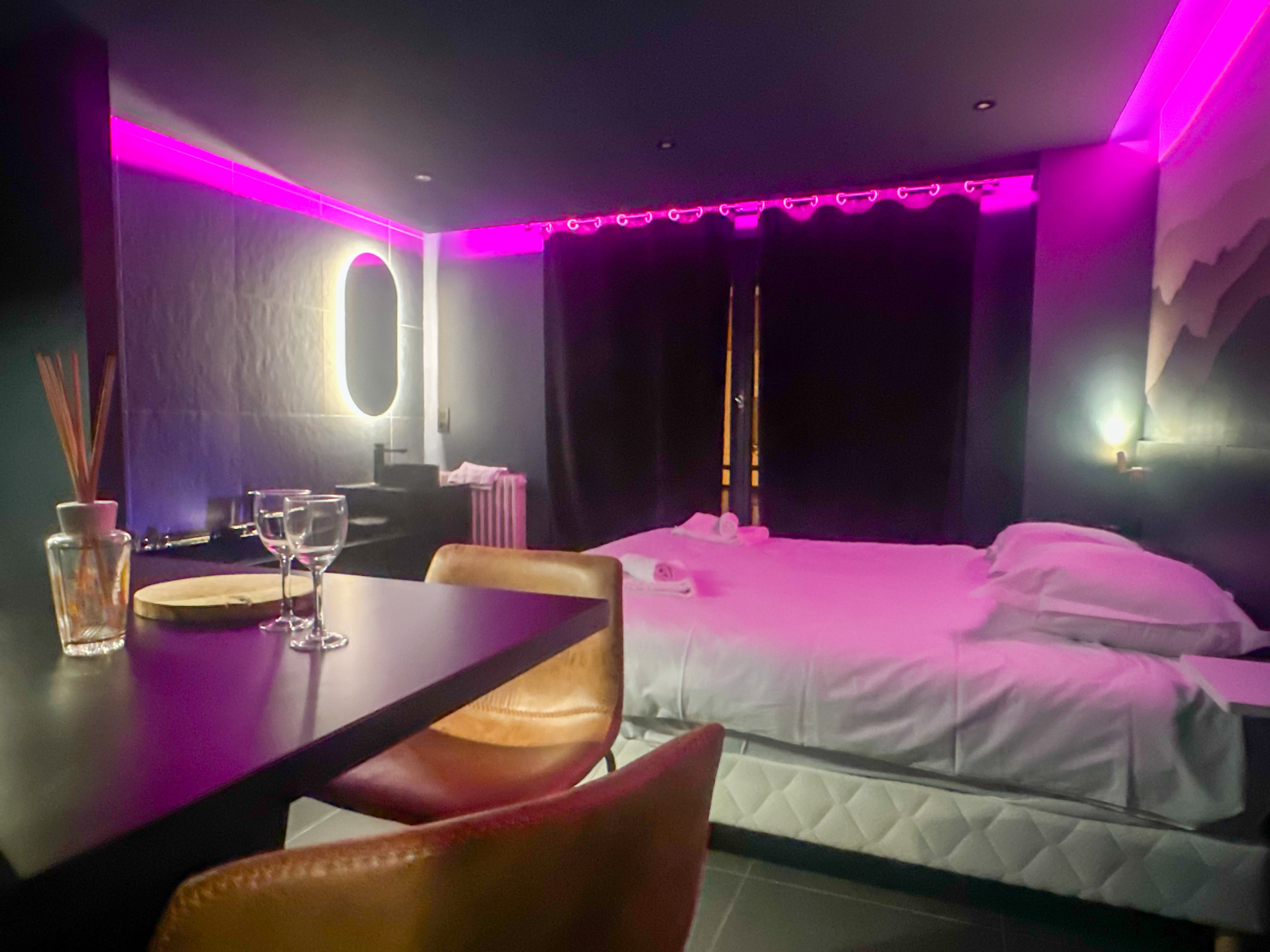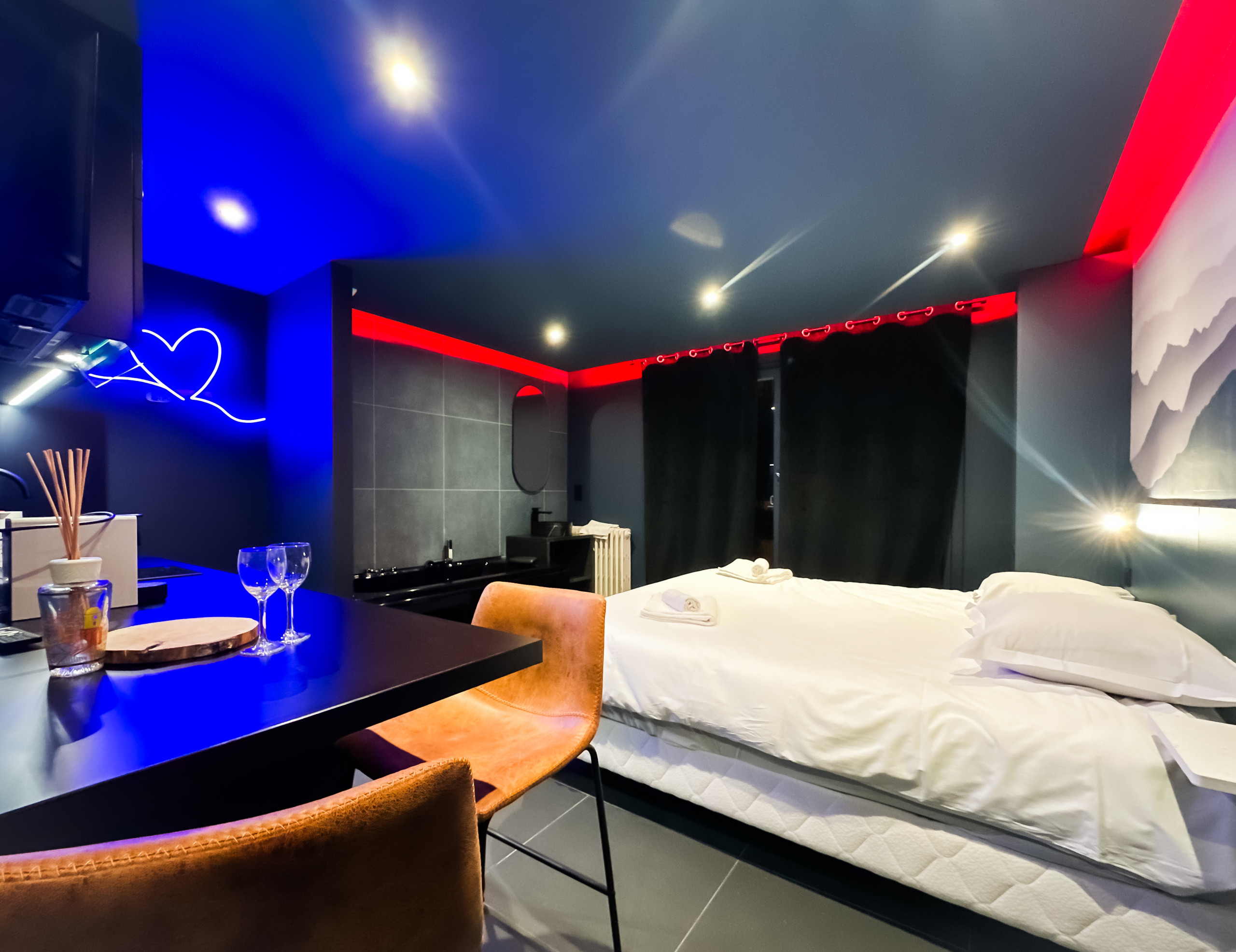 Heart-shaped petals, candles on the bed, personalized note, 1/2 bottle of Champagne from Cattier Brut Premier Cru.
