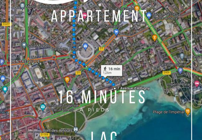 La localisation est idéale pour visiter ANNECY à pieds ! Tous les commerces, boutiques de souvenirs, galeries et restaurants typiques sont présents