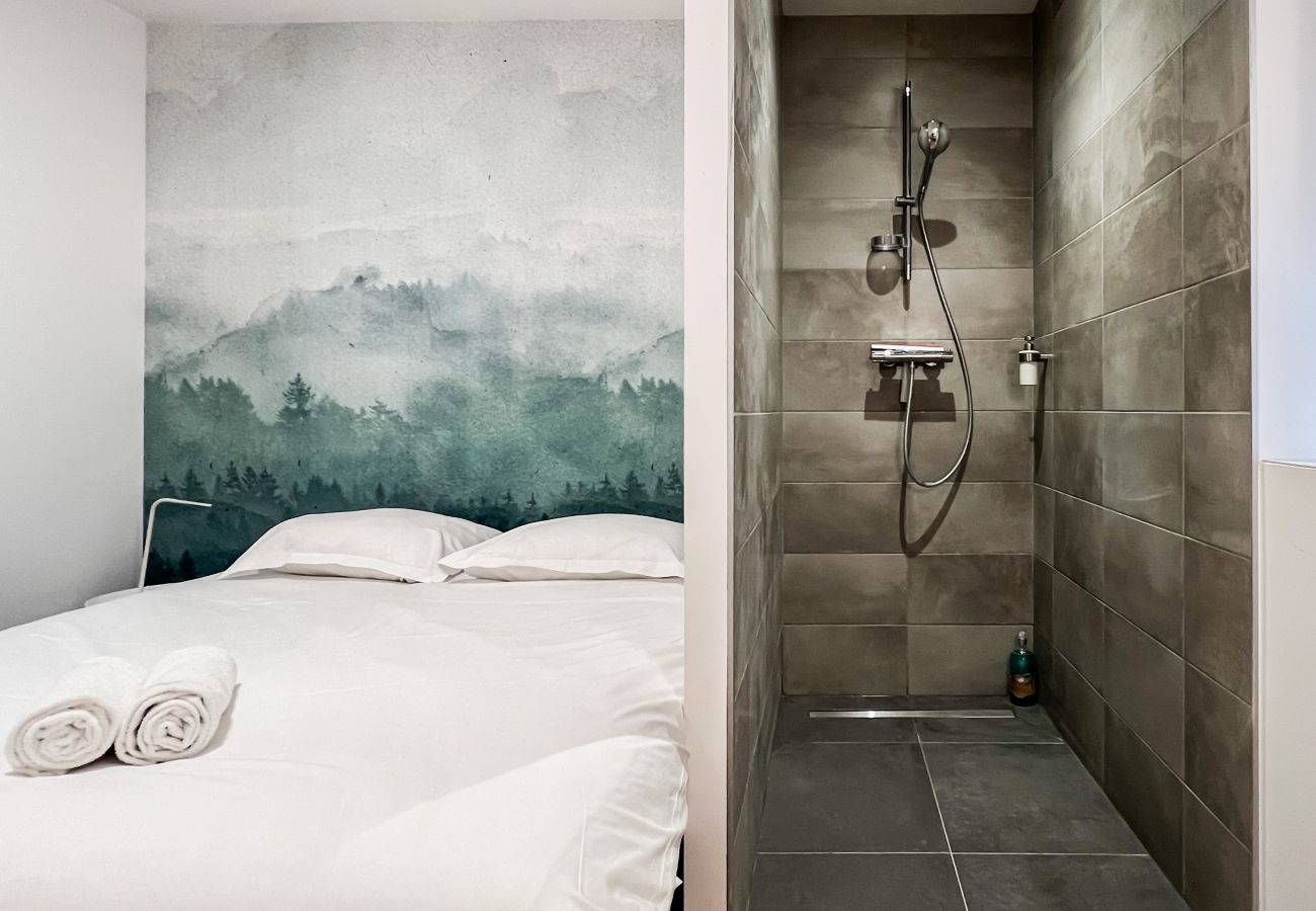 Une suite avec un grand lit double 160*200 cm et sa douche à l'italienne