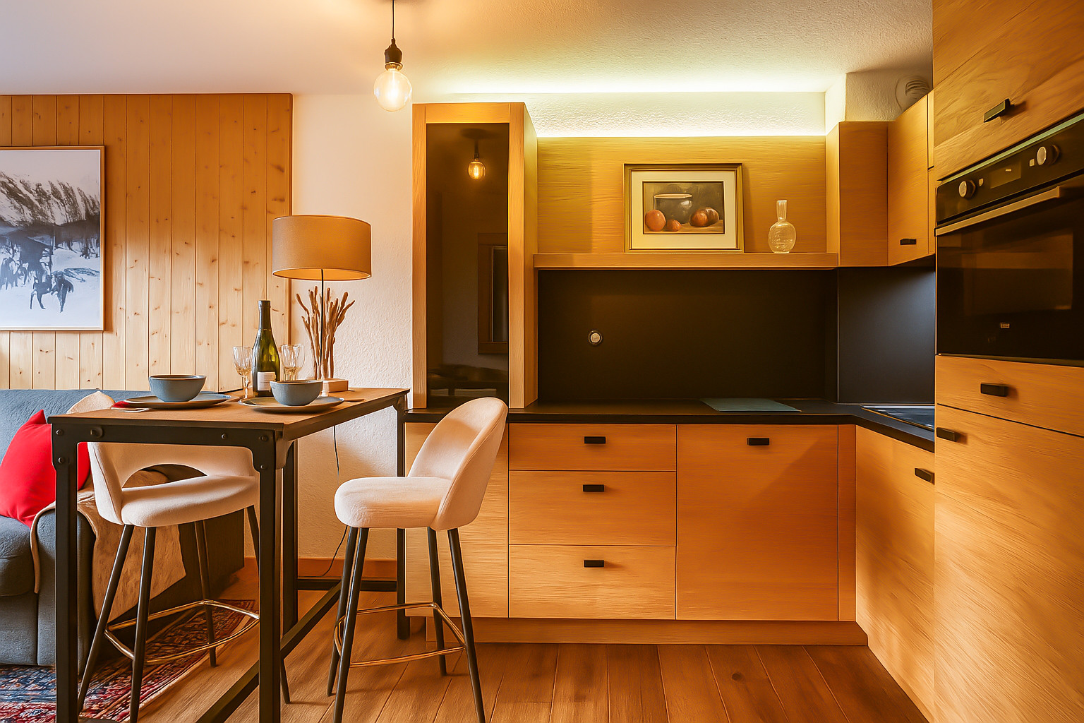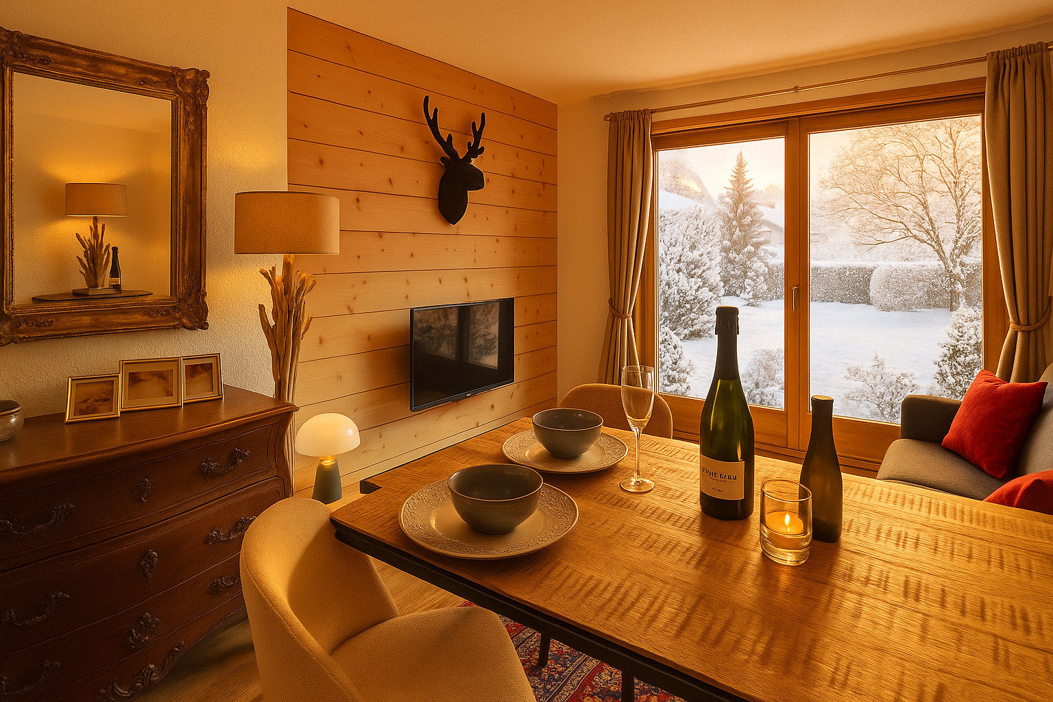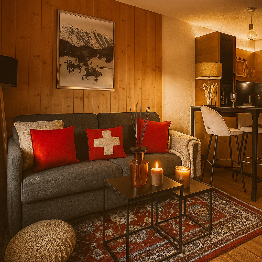 Découvrez ce charmant appartement de 50m² situé au cœur de Megève, parfaitement conçu pour un séjour romantique en amoureux dans les montagnes. Cet hébergement récemment rénové avec goût offre un cadre cosy et élégant.