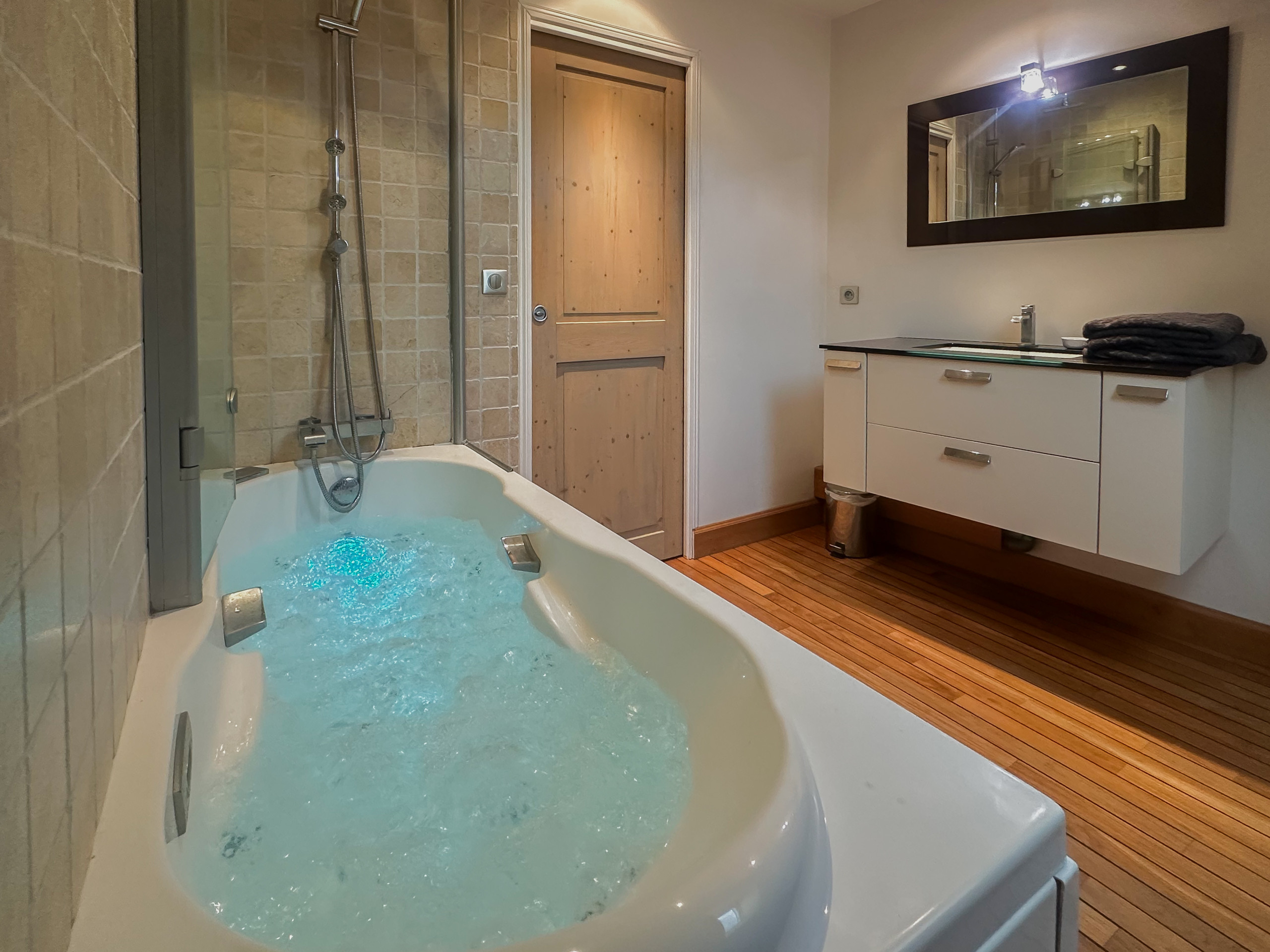Un petit plus qui ravira les amoureux : le jacuzzi vous offrira des moments de détente et de complicité uniques. L'appartement est situé dans un environnement montagnard idéal, permettant de profiter pleinement des activités et de la nature environnante.