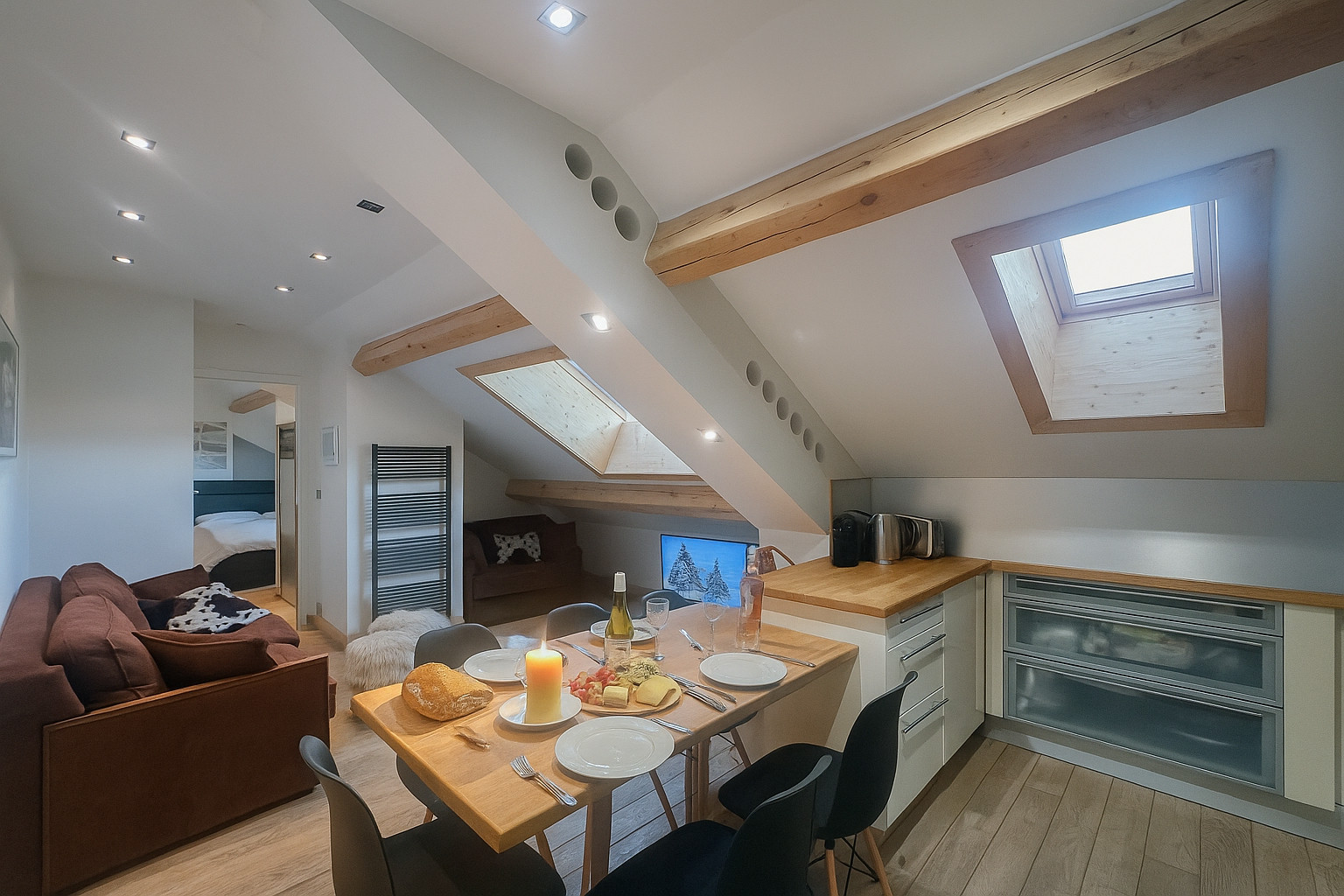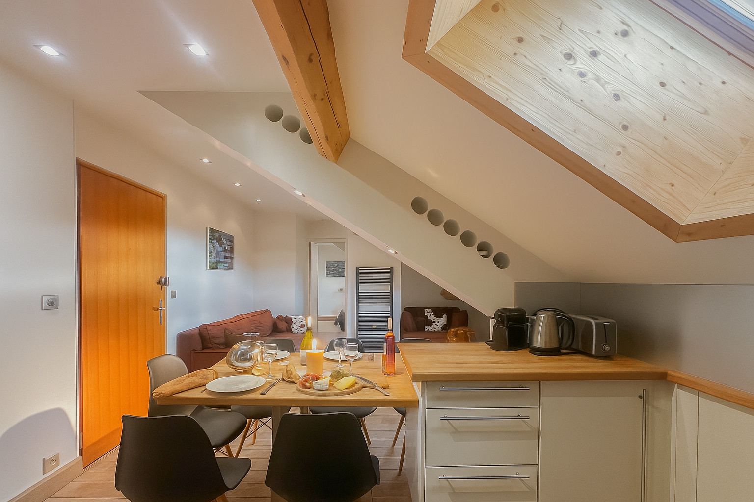 Entièrement meublé avec goût, ce logement moderne offre une expérience intimiste et chaleureuse.