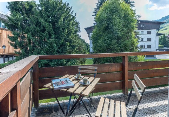 Petit appartement équipé et confortable idéalement situé à l'entrée de Megève avec un joli balcon.