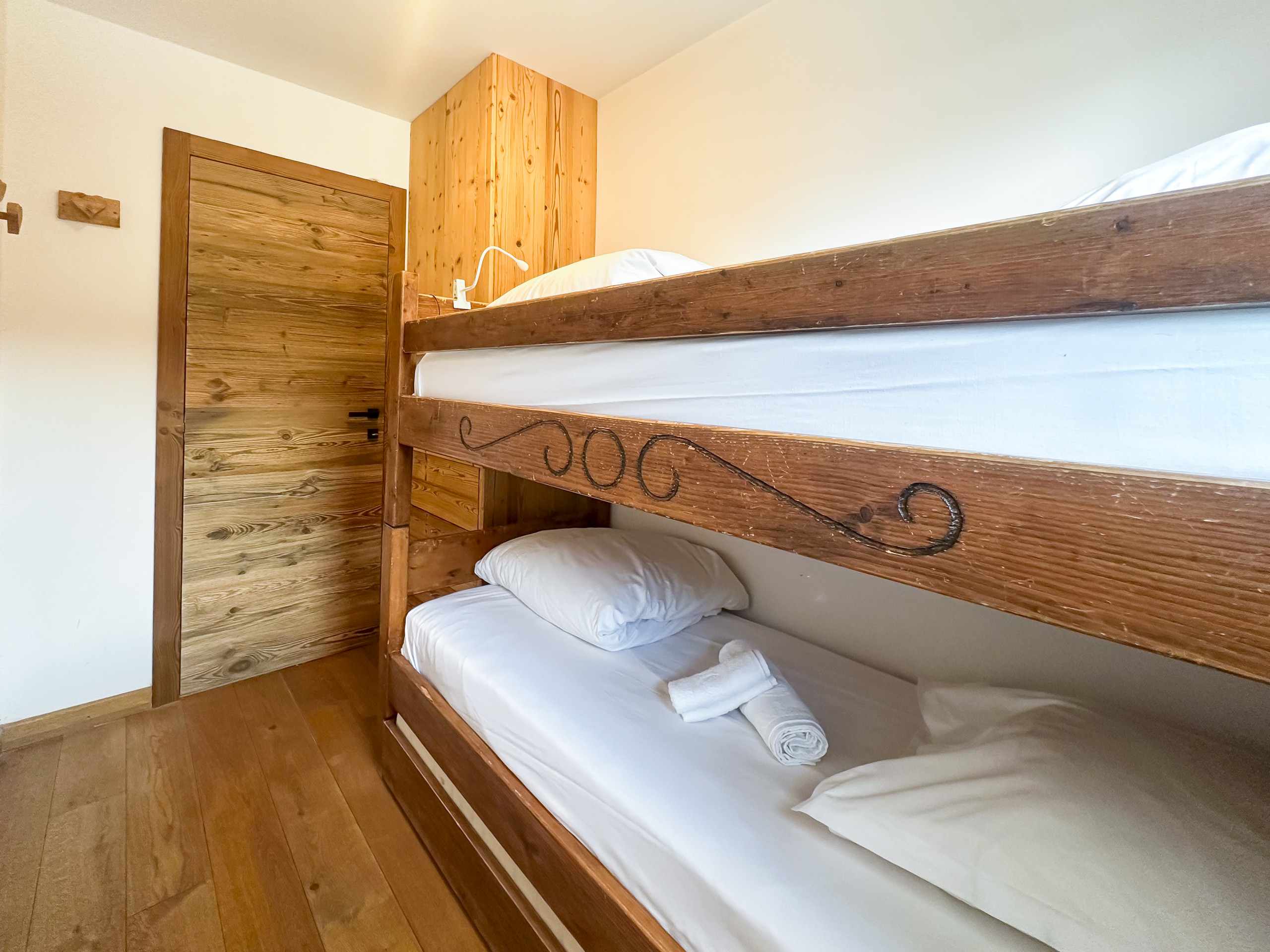 Une deuxième chambre séparée type cabine avec 2 lits superposés.