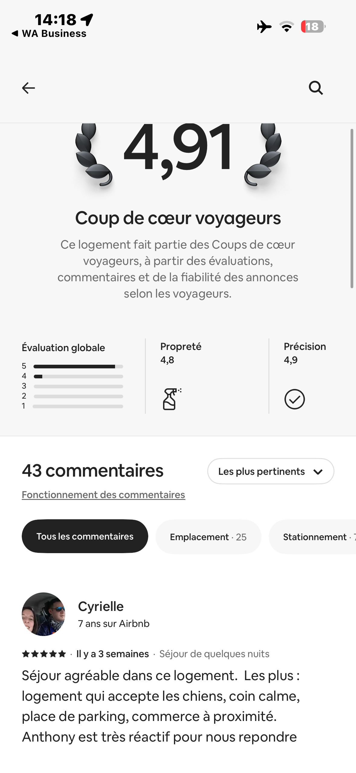 Consultez nos autres logements si vous avez besoin de voir plus de commentaires confirmant la qualité de notre service. -