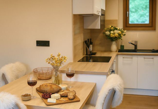 L'hébergement dispose d'un agencement intelligent avec un lit double et un lit superposé, permettant un sommeil confortable pour tous. La salle de bain avec baignoire ajoutera une touche de confort après une journée remplie d'activités montagnardes.