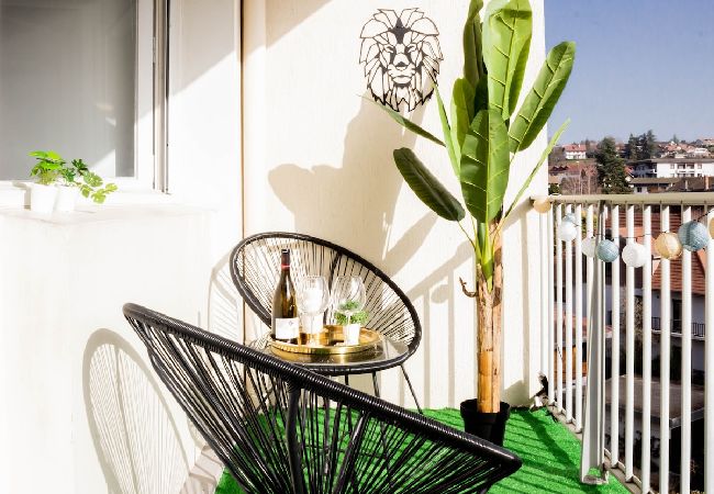 Un joli balcon avec un espace détente, parfait pour un apéritif réussi et également une petite table ronde.