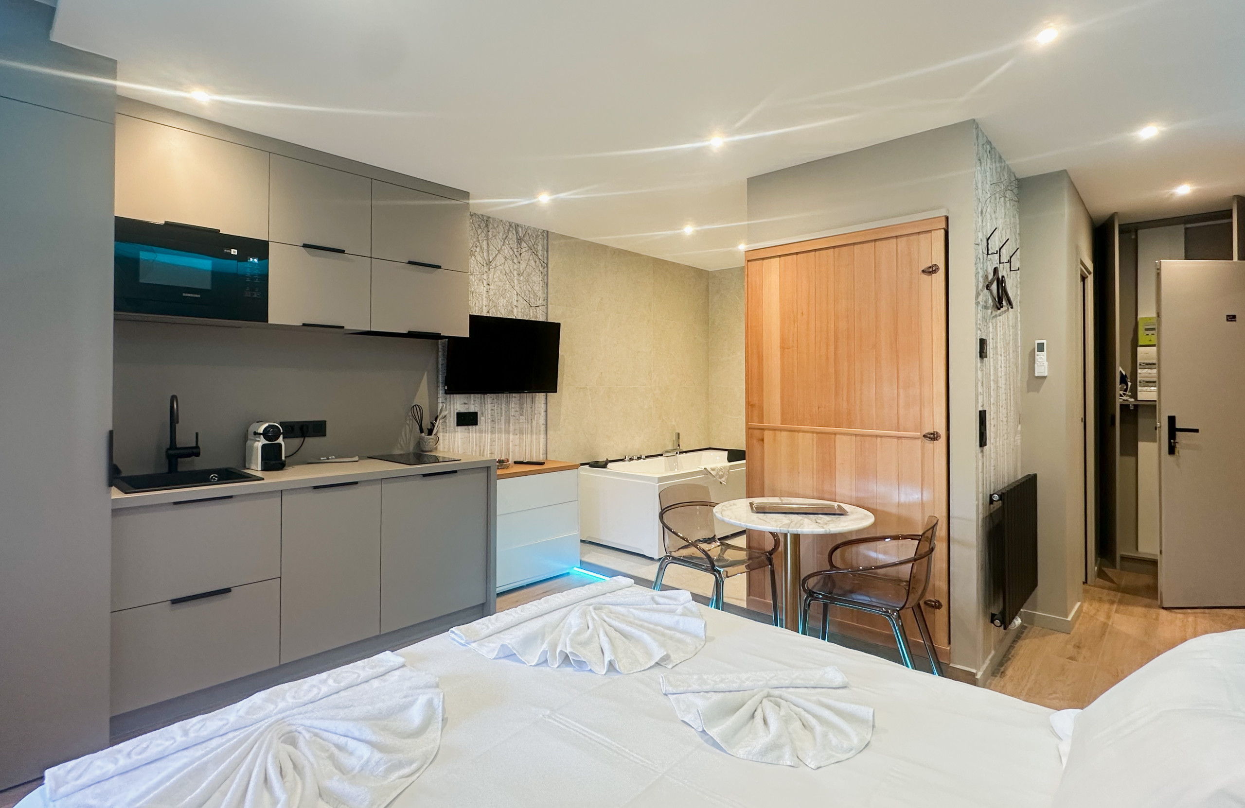 Emplacement n°1 - Ce studio style bohème bénéficie d'une belle luminosité naturelle, il est optimisé pour offrir un espace confortable et fonctionnel. Situé à seulement 2 minutes à pied du lac et au cœur du centre-ville.