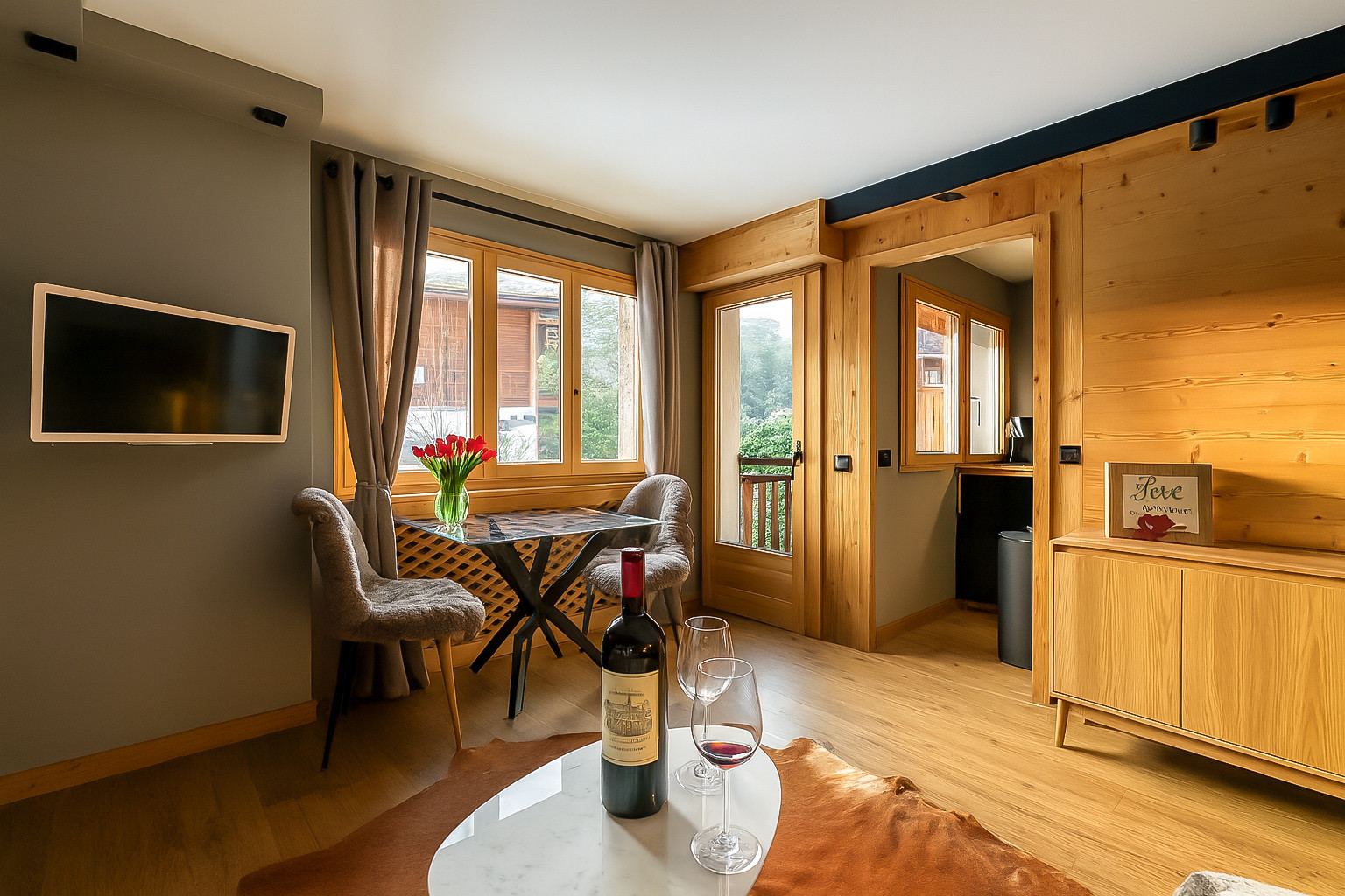 Petit appartement confortable idéalement situé à l'entrée de Megève avec une jolie terrasse.